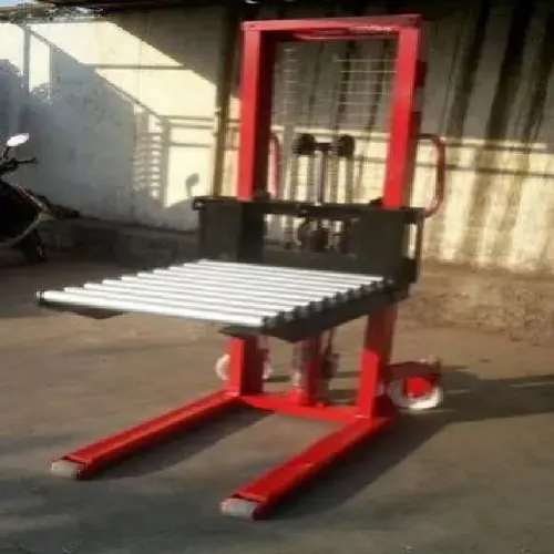 Hydraulic paper roll stacker made from mild steel. Designed for industrial applications with a lifting capacity of 500 to 1500 kgs and a polished finishing.