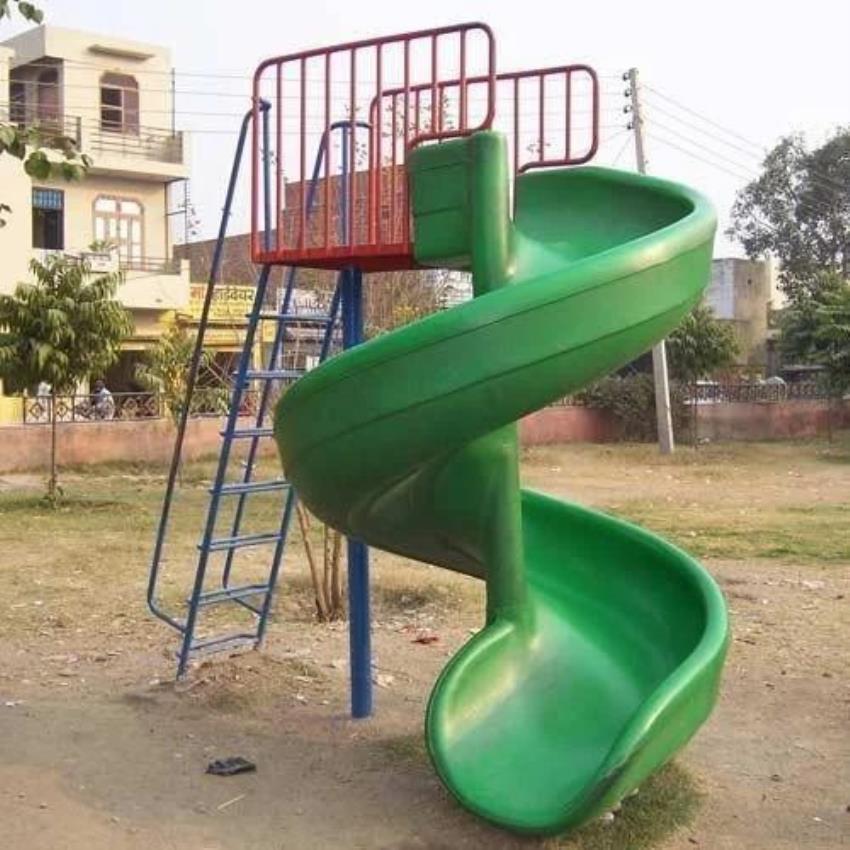 ILDPE spiral slide for outdoor playgrounds, suitable for ages 4-14. Multi-color, outdoor equipment, 9x6 size, with powder coating. Ideal for parks and resorts.
