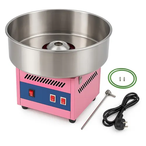 This imported electric candy floss machine is made of SS. It operates on electric power. Origin stated as Made in India.