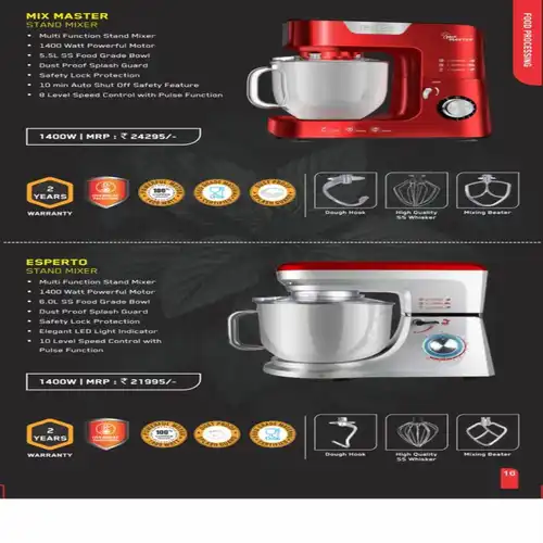 ISI certified Inalsa stand mixer crafted from stainless steel. Features 3 speeds and 3 jars for versatile wet & dry grinding applications.