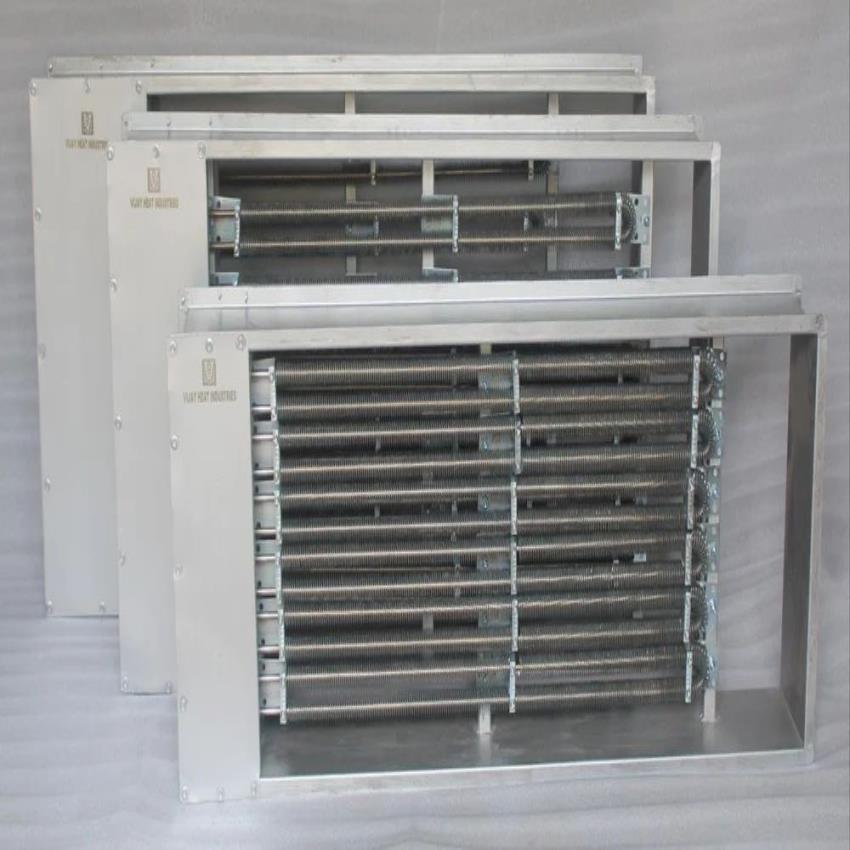 Indian-made industrial air duct heaters, 230V, 3-phase. Tubular SS heaters for robust HVAC and industrial heating systems. New condition.