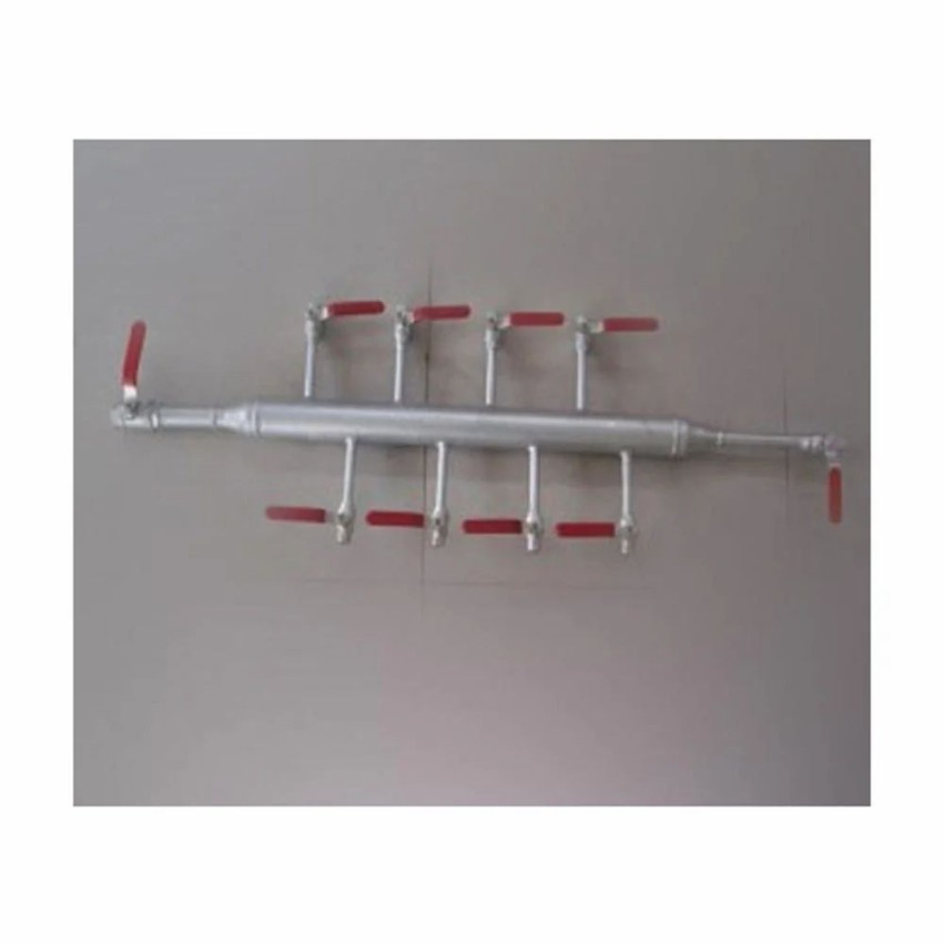 Industrial air manifold, 1/2 inch size, with a ball valve drain. Made in India, suitable for new industrial applications. Reliable and durable construction.