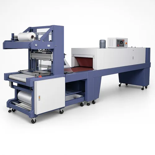 Automatic shrink wrapping machine with 20-80 pieces/min capacity. Mild steel construction, 220V, 50Hz. Handles glass, paper, plastic packaging. Suitable for apparel, food, medical industries.