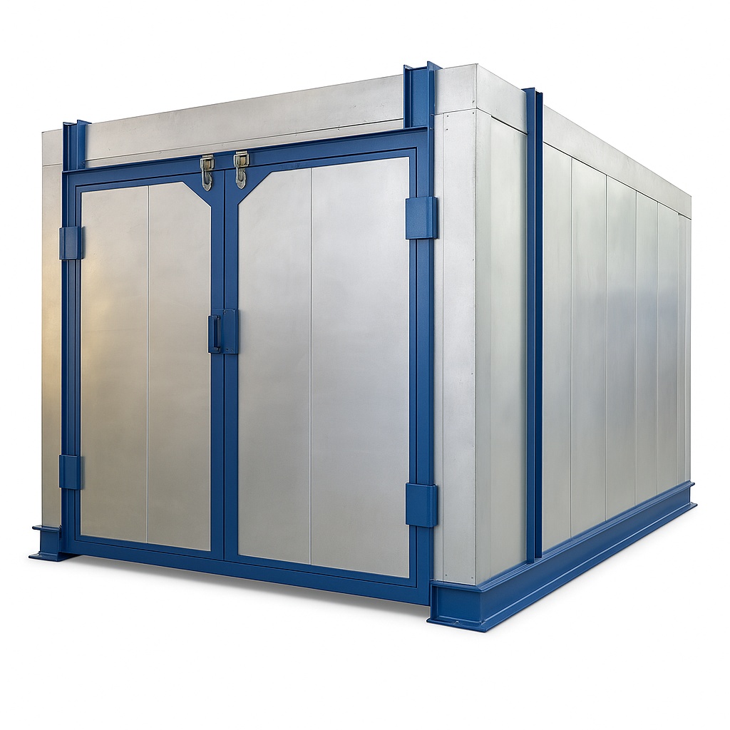 Semi-automatic industrial batch oven with digital/analog display, 415V, 200-300°C. Vertical down airflow, double door, suitable for curing and drying.
