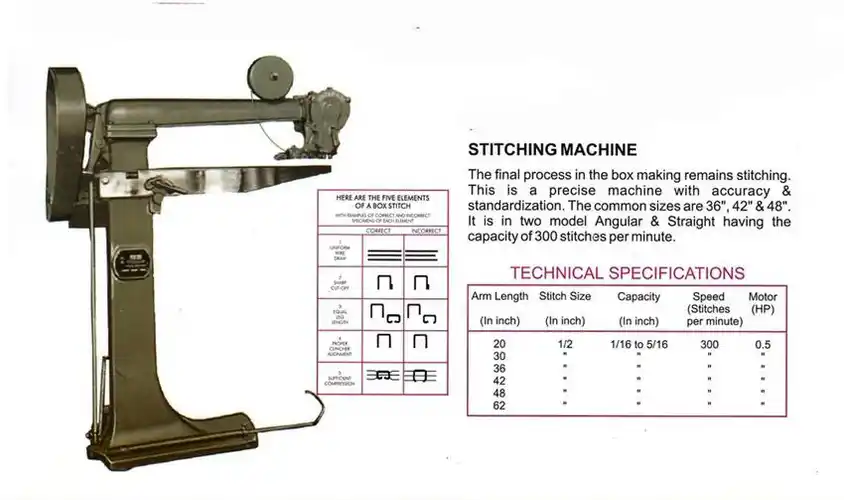 Semi-automatic box stitching machine made of mild steel. Offers 3 HP motor, 440V, and 20'-62' size range for efficient box stitching. New.