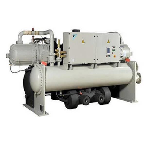Industrial 100-ton, three-phase, semi-automatic centrifugal chiller. Features water-cooled operation for efficient climate control in commercial and industrial applications.