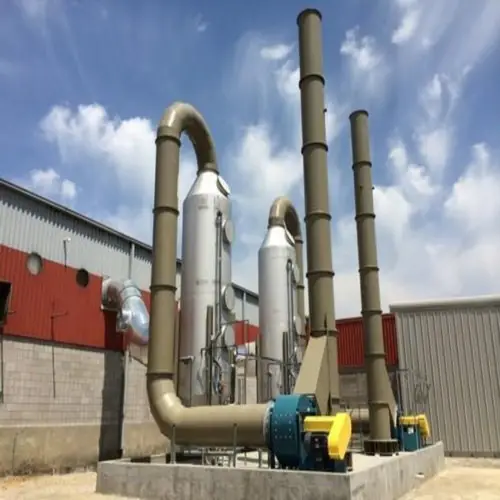 Stainless Steel Industrial Chemical Scrubber for the steel industry. Features 3000 CFM airflow, 99% efficiency, 6 HP power, and 3-phase operation at 440V.