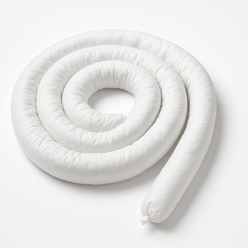 Mini chemical sorbent booms, model P200. Designed for industrial use, 3" x 4' size. Absorbs 3.80 liters of fluids while repelling water.
