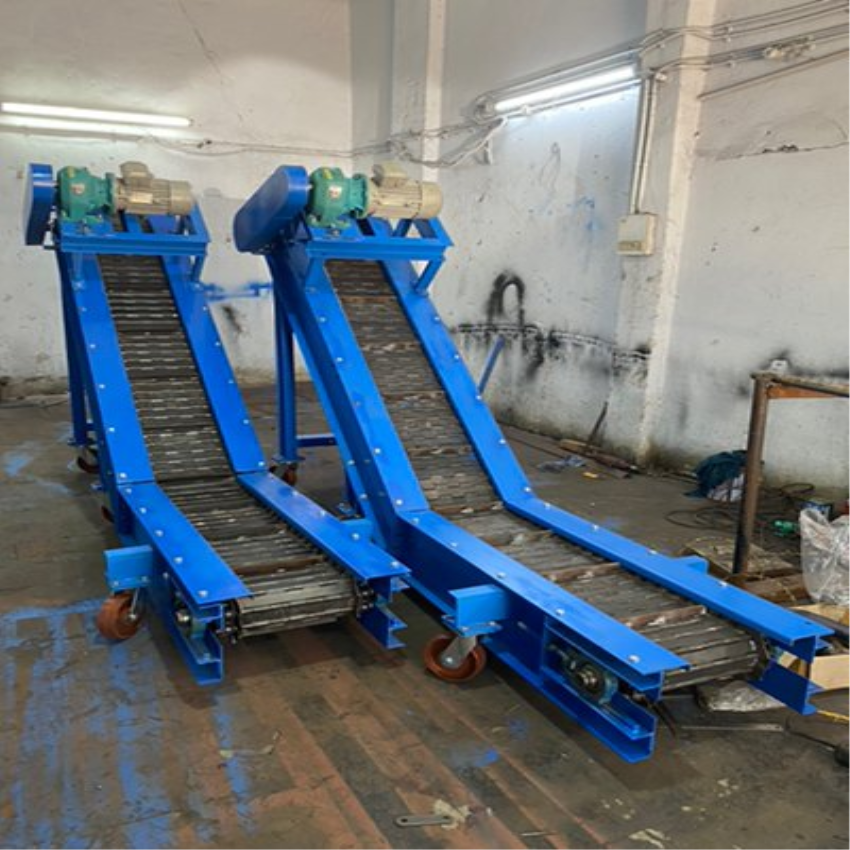 Mild steel chip conveyors designed for industrial machinery. Features customizable design, painting/powder coat finish, and 3-phase power. Made in India.
