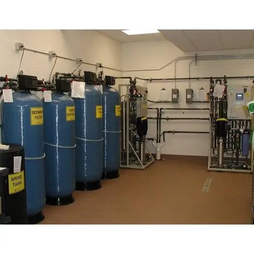 Electric powered dialysis water treatment machine with 50L/H capacity. Made from Stainless Steel FRP, designed for industrial wastewater.