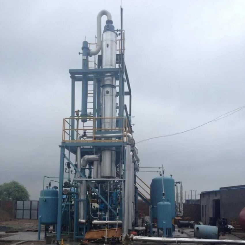 Industrial distillation equipment with 50-liter capacity. Constructed from SS & Alloys with mirror/matt polishing. Operates between 0-100 psi and 0-300°C.