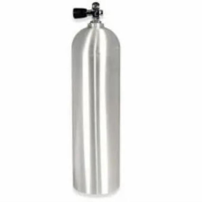 Industrial diving cylinder with 10 L capacity, 300 Bar pressure, and stainless steel construction (SS316). Features silver coating and polished surface finish for industrial applications.