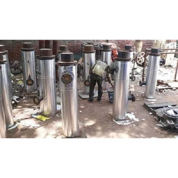 Vertical U-shaped electric air heater, mild steel construction, 230V, 50Hz, 18kW power, capable of reaching 200°C. Designed for industrial applications.