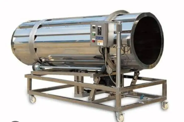 Semi-automatic industrial electric dried fruit roasting machine. Capacity 120-150kg/h. Made of S.S. Consumes 19 hp, 3 phase electric power.