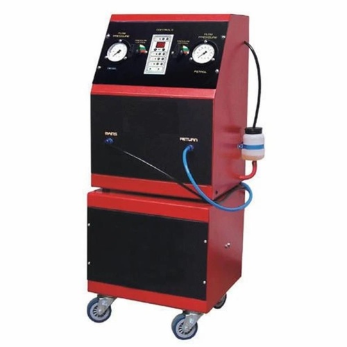 Industrial semi-automatic machine uses distilled water for engine chamber decarbonizing. Features air cooling, single motor phase, 600W rated power, and 220-240V, 50 Hz operation.