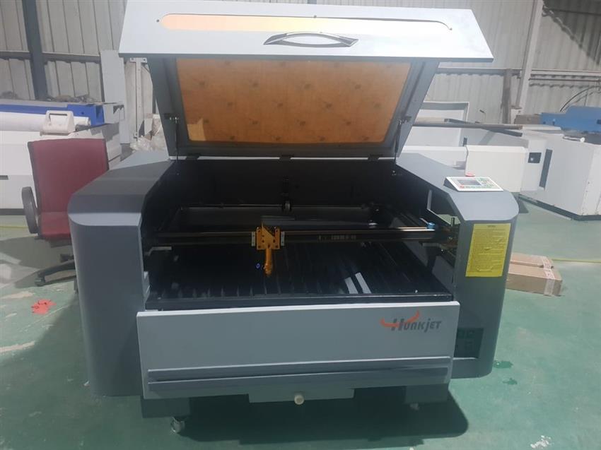 Industrial electric fabric laser cutting machine with 80W capacity. Operates at 50 Hz, 28°C, and single phase. Ideal for fabric processing.