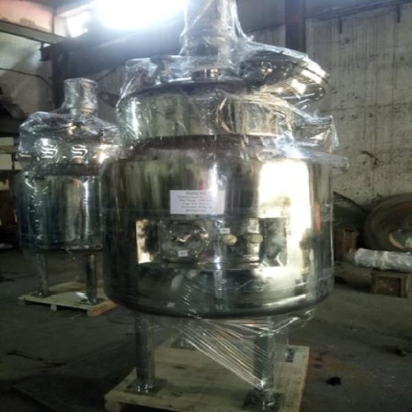 Semi-automatic 500-liter stainless steel industrial fermenter. Polished finish, capable of 3 Kg max pressure, designed for biofertilizer applications.