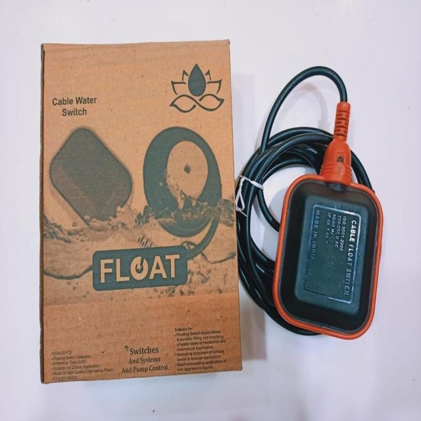 Black industrial float water level sensor, 220V. Designed for reliable liquid level detection in industrial environments. Packaged in a protective box for safe delivery.