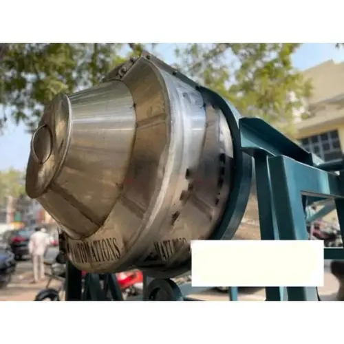 Semi-automatic gas rotary roaster machine made of SS 302. Capacity of 50-150 KG, 10 KW power, corrosion-resistant, designed for industrial vermicelli roasting.