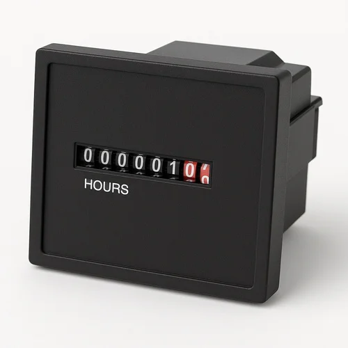 Industrial hour meter time totalizer for tracking operational hours. Reliable performance in industrial settings. Essential for maintenance scheduling and equipment usage monitoring.