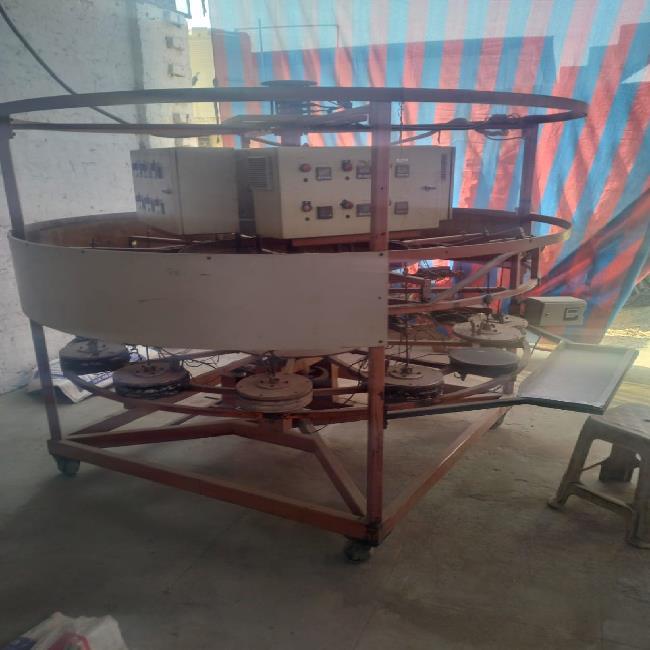 Automatic khakhra making machine (Model KMM 12) for industrial use. Produces 1400 pcs/hr, consuming 27 HP. Manufactured with precision for high output.