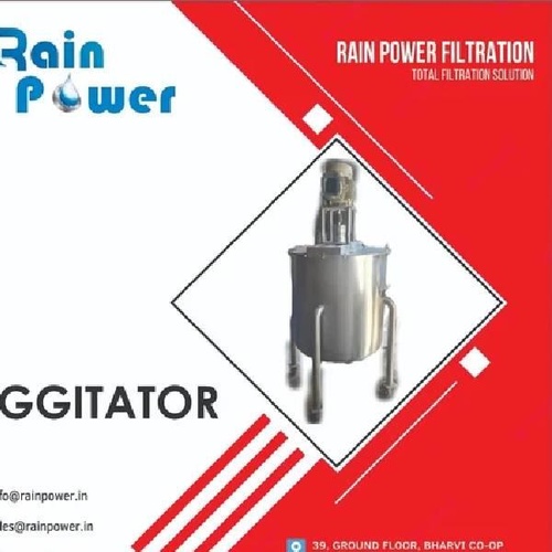 3-phase industrial agitator, 415V, 50Hz, with 25mm shaft. Available in carbon steel, SS304, SS316, SS317, FRP, or rubber lining. Capacity 100-5 KL.
