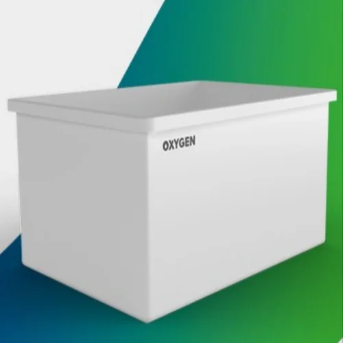 Durable plastic container for industrial use. Ideal for storing chemicals and oils. Rectangular shape, natural color, 480-liter capacity. Made in India, immediate delivery.