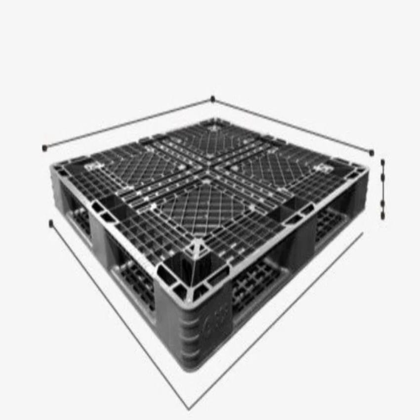 Industrial plastic pallet with 1-ton capacity. Dimensions are 1200x800x125mm (LXWXH). Robust design suitable for heavy-duty industrial storage and handling.