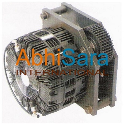 Pneumatic brake with max torque of 960 Nm at 2500 rpm. Operates at 0.2-6 bar pressure. Available in 24 V DC or 230 V AC. Weighs 22 kg.