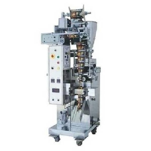Mild steel industrial pouch packaging machine for high-volume production. Designed for efficient and reliable packaging of various product types in an industrial setting.