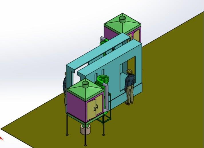 Semi-automatic industrial powder coating machine for steel and MS. Features cross-flow air, electric heating, and hopper. Available in 3-phase/single configurations.