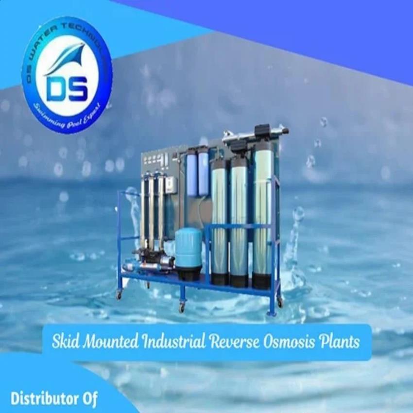 Skid-mounted industrial reverse osmosis plant with 400-gallon capacity. Constructed from durable stainless steel for various industrial applications. Minimum order quantity is 1 unit.