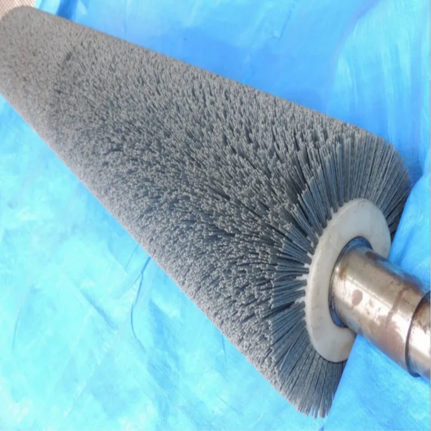 Hard nylon bristles, 50mm length, on mild steel backing. 16-20 inch brush length, 101-200mm outer diameter. Black color, boxed packaging.