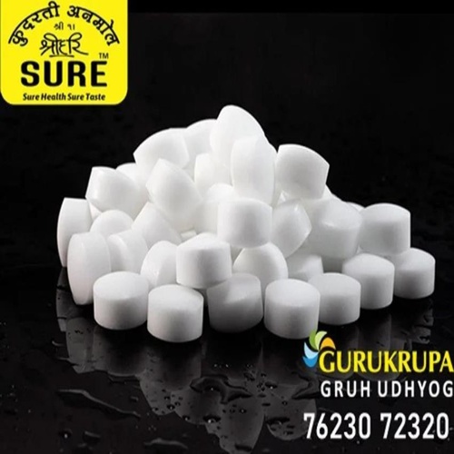 Industrial grade white salt tablets, 99% purity. 25 Kg PP bag packaging, suitable for industrial water softening applications with corrosion inhibitors. Made in India.