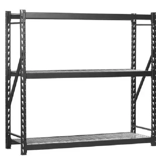 Mild Steel Slotted Angle Rack with powder coating. Features 3 layers, 4 ft height, and 400 kg per layer capacity. Ideal for industrial free-standing units.