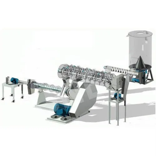 Fully automatic industrial soya nuggets extruder. Features 400 kg/hr capacity, 25 kW total load, and a 2 hp AC motor with gearbox. Ideal for large-scale production.