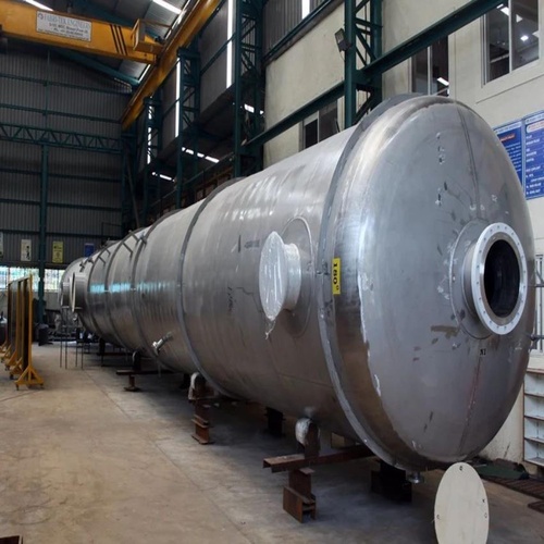 Customised industrial distillation equipment, 25 mtr length. Constructed from SS316L, SS304, or Duplex materials. Silver color, suitable for various industrial applications.