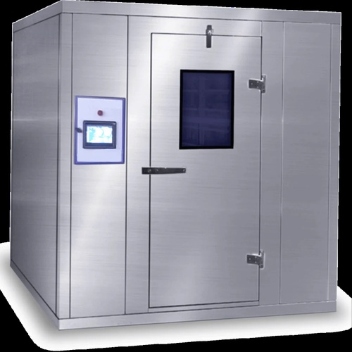 This industrial stability chamber features a condenser, stainless steel construction, and operates on single-phase 240V with a 50 Hz frequency for reliable performance.