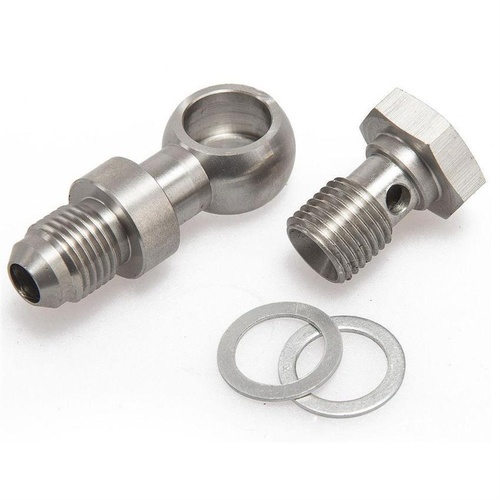 Galvanized stainless steel banjo bolt, 1-4 inch length, for industrial applications. Offers corrosion resistance, packaged in a box.