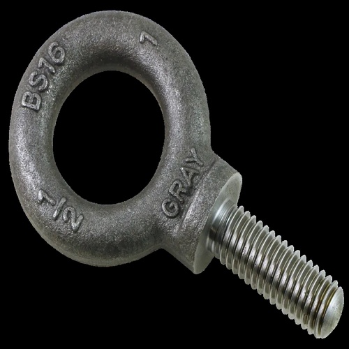 Silver round stainless steel eye bolt with full thread for industrial use. Available in all sizes. Minimum order quantity of 10 pieces. Robust and corrosion-resistant.