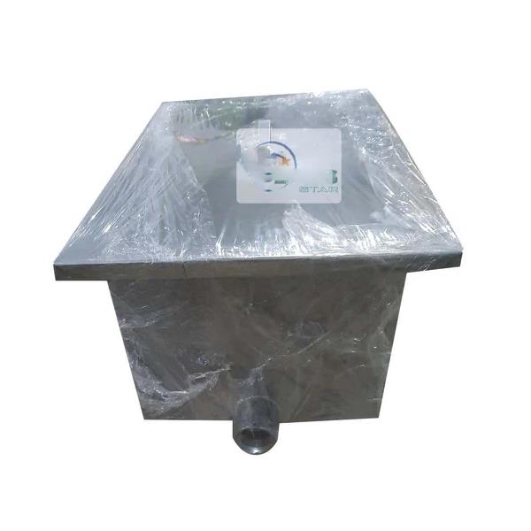 Durable SS 304 stainless steel grease trap, 15-liter capacity. Engineered for robust industrial applications, effectively separating grease and oil from wastewater for efficient facility management.
