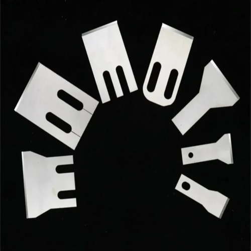 Polished stainless steel pelletizer blades for plastic extruders. 10mm thickness, capacity 500 units weekly. In stock.