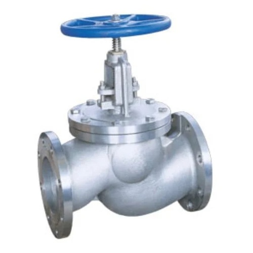 Standard industrial globe valve with flange connection. Designed for industrial use with manual driving mode. Available in new condition, originating from India.