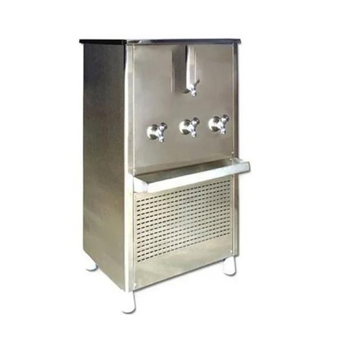 Stainless steel water cooler with cooling and storage capacities of 25-250 L/hr and liters respectively. Built with durable stainless steel.