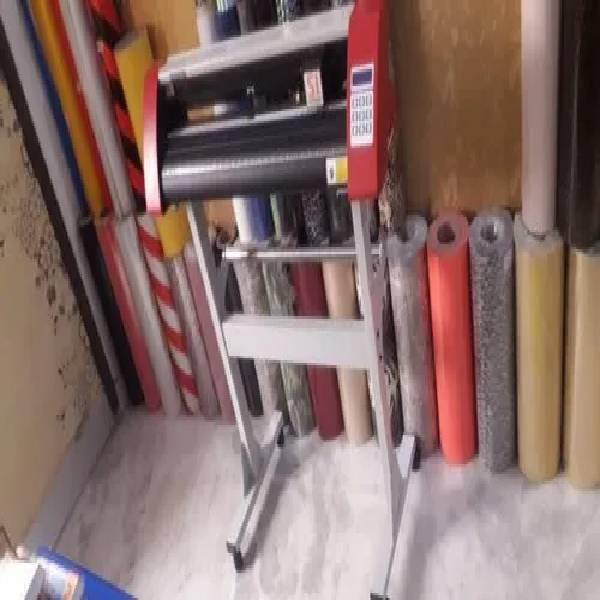 Industrial stainless steel sticker cutting device. Features adjustable cutter pressure from 0-500g and a wide 1500mm cutting width. Operates on 110V/220V for versatile industrial use.