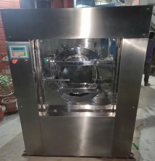 Heavy-duty industrial washer extractor with front loading. Available capacities: 15/30/60/120 KG, with a maximum of 300 kg. Operates on 440V and is Made in India.