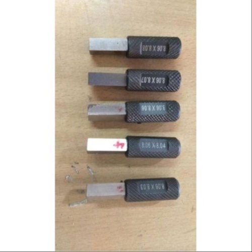 SS and rubber width gauge for industrial machinery. Available in sizes ranging from 8.06 X 8.03mm to 8.06 X 8.08mm. Packaged in a carton.