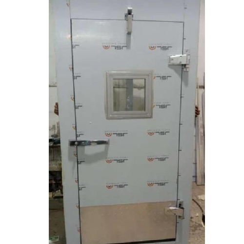 Galvanized Iron (GI) cold room door with 60mm insulation. Designed for food industry applications, ensuring temperature control and hygiene. Size 72"x34".