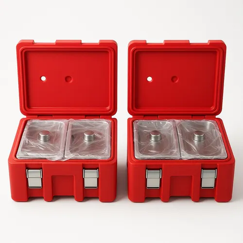 Insulated food box designed for maintaining food temperature. Suitable for various catering and food service applications.