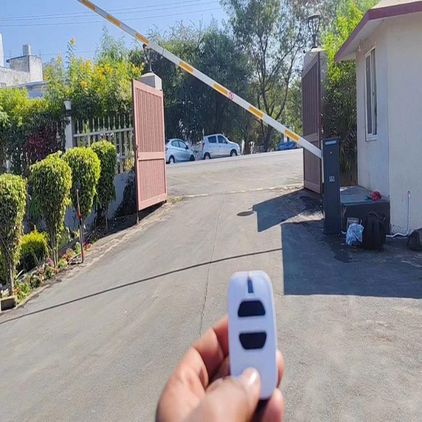 Automatic iron boom barrier for parking applications. Single phase, 220V operation. Durable construction for secure access control.